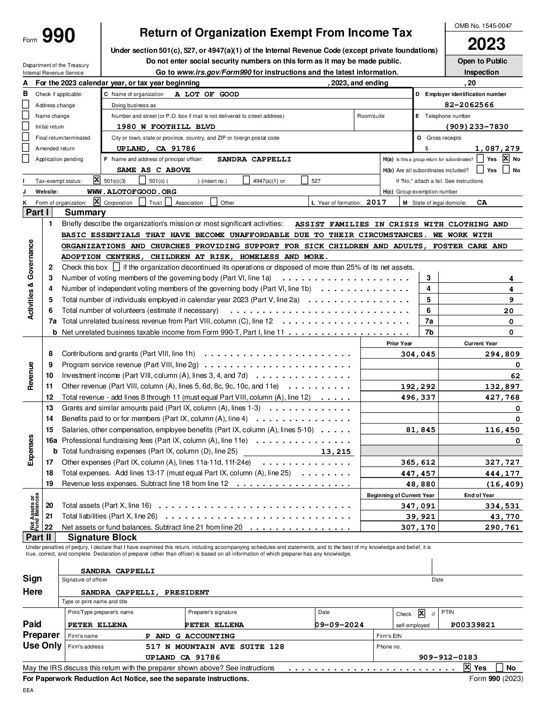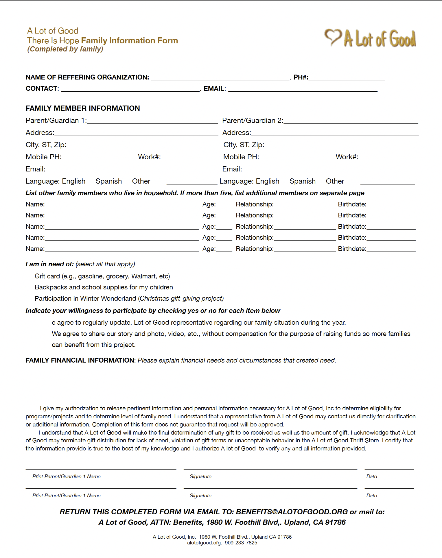 If you are looking for something specific that is not here, please call the A Lot of Good office at 909-233-7825.